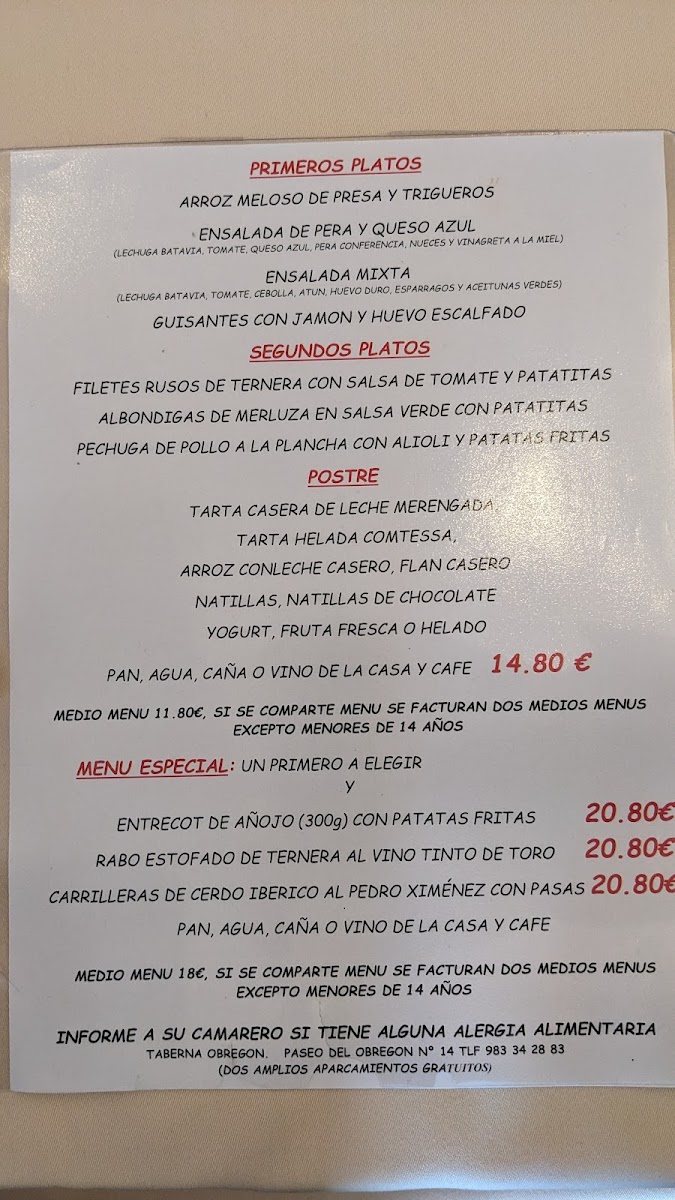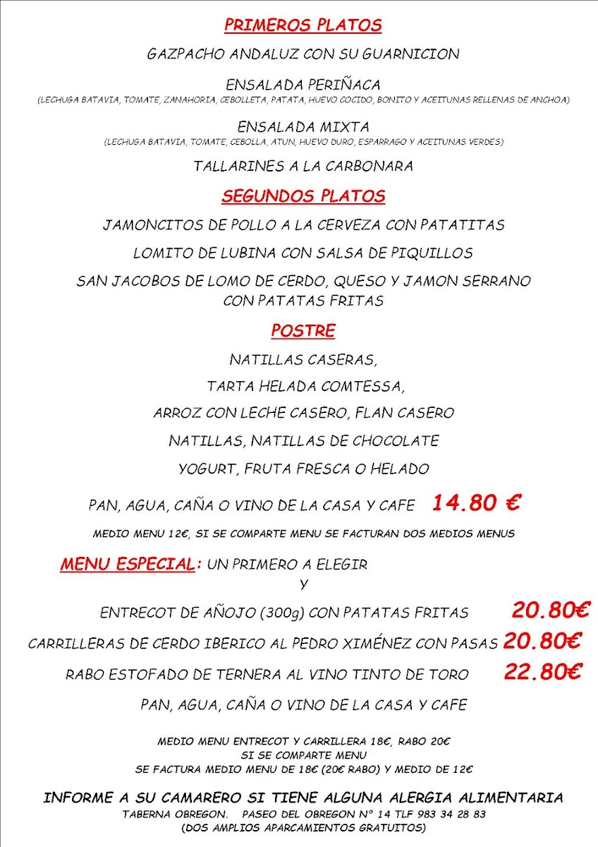 Welcome to Taberna Obregón, a culinary gem nestled in the heart of Valladolid, Spain. This vibrant eatery offers a menu that caters to both traditional tastes and modern appetites, all at an incredible price of just €14.80 for the daily menu. This delightful set includes a first course, a second course, dessert, coffee, and drinks, making it a value-conscious choice for all.